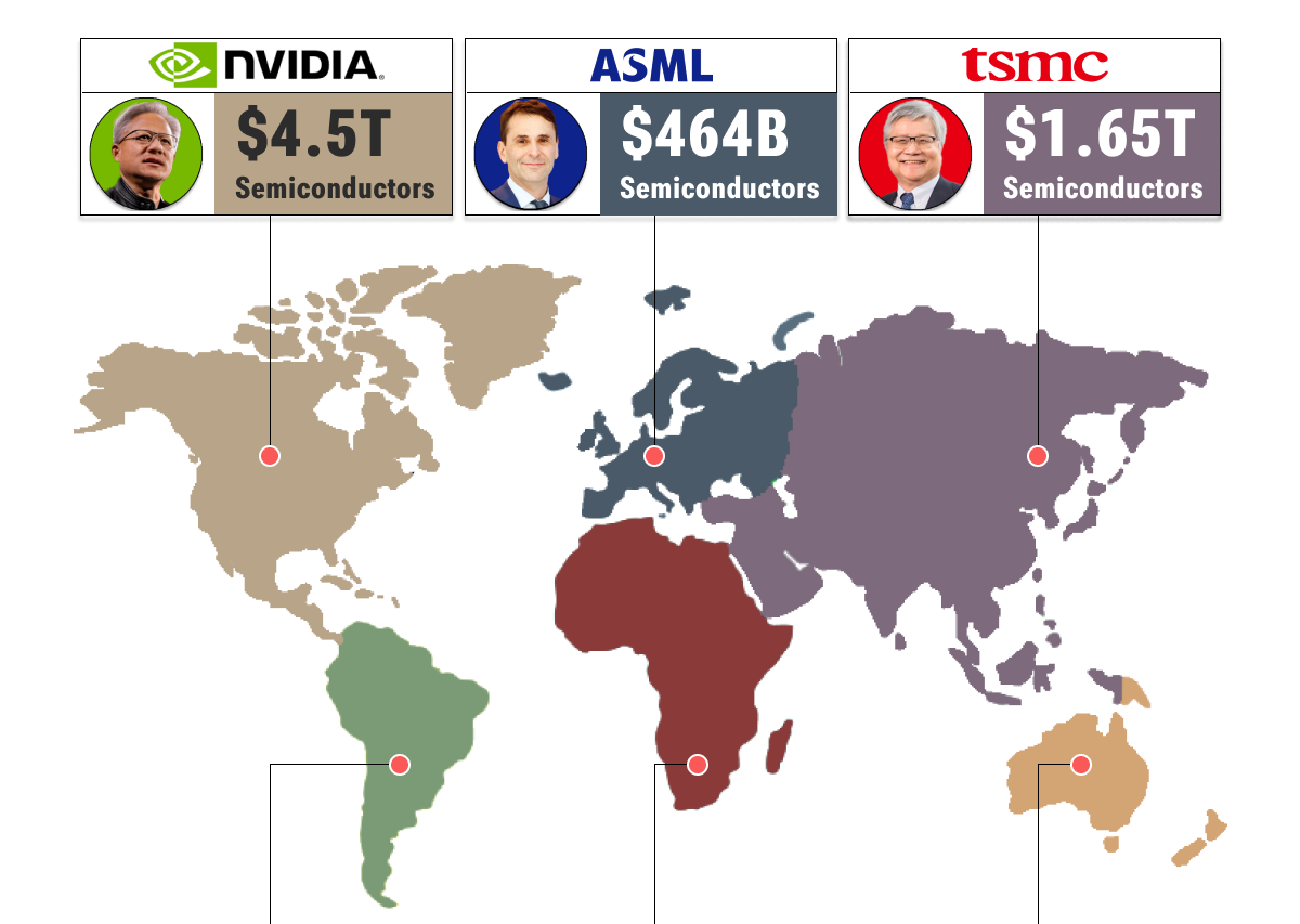 A quick look at the largest listed companies on each continent.